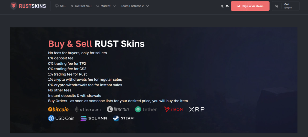 There’s nothing worse than listing a skin and waiting days for a buyer to bite. Because RustSkins has consolidated such a huge portion of the RUST trading community, the liquidity here is through the roof. Most common skins sell within minutes because the site attracts dedicated RUST buyers who aren’t distracted by other games. If you’re looking to sell RUST skins and get paid the same day, the sheer volume of active traffic here makes it the most reliable choice.